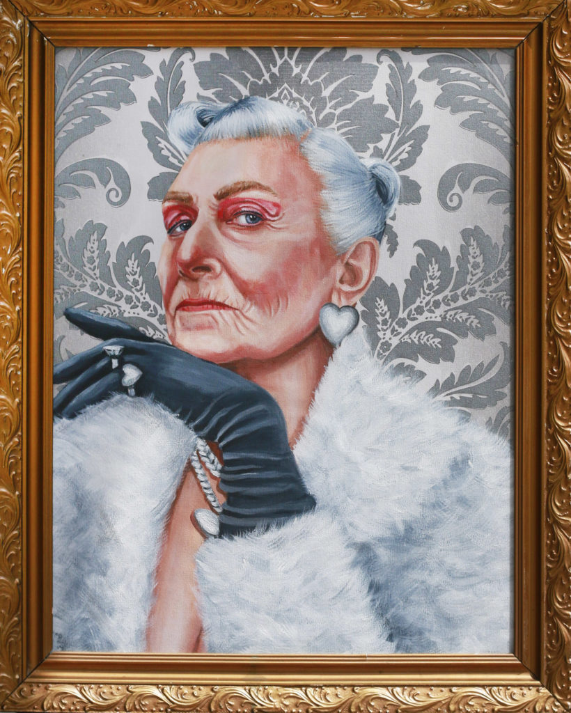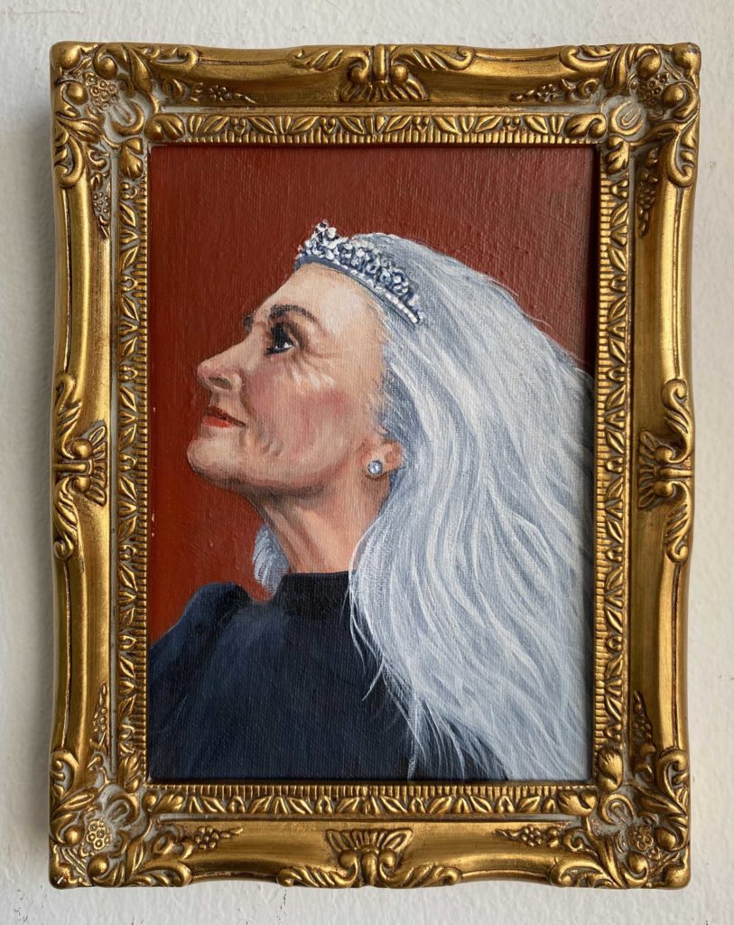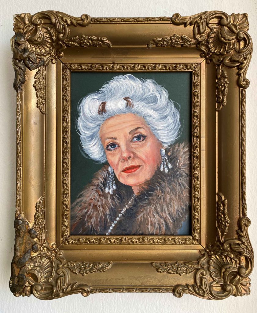 Buluntu çerçeve ve karton üzerine akrilik. Çerçeve ile birlikte 27x32 cm