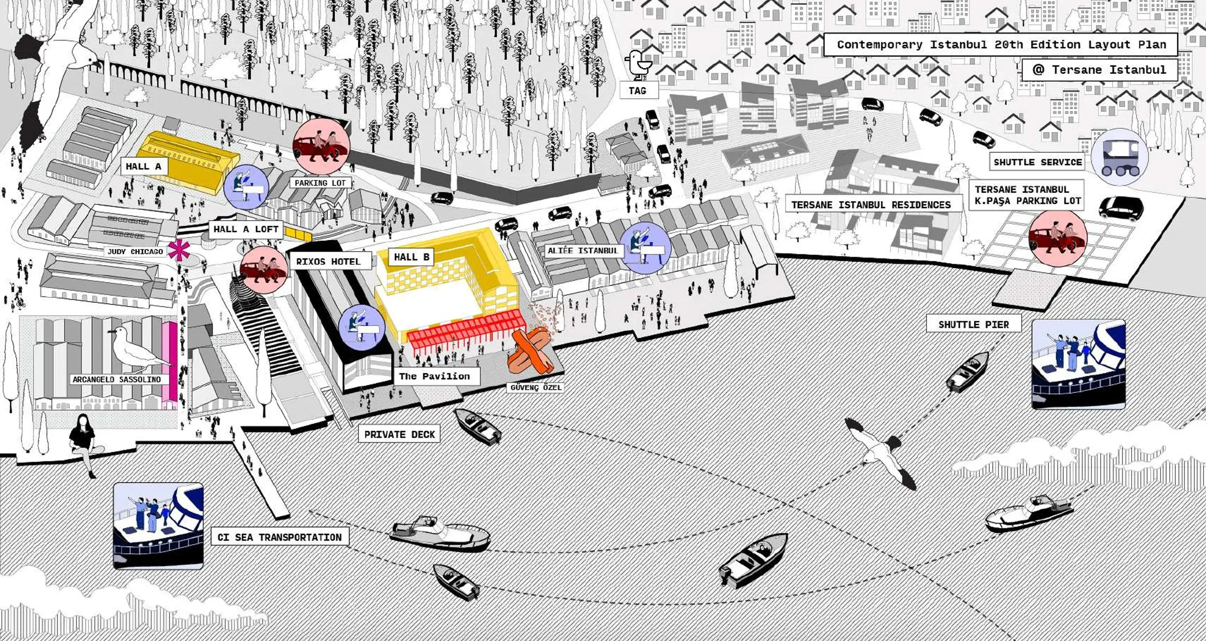 Contemporary Istanbul’un 20. yılı kapsamında, ziyaretçiler için Beşiktaş, Kabataş, Karaköy ve Kadıköy iskelelerinden Tersane İstanbul’a ücretsiz tekne seferleri düzenlenecek. Tekneler, fuar süresince belirlenen saatlerde iskelelerden kalkarak Tersane İstanbul’a ulaşım sağlayacak, dönüşler ise aynı iskelelere olacak.
