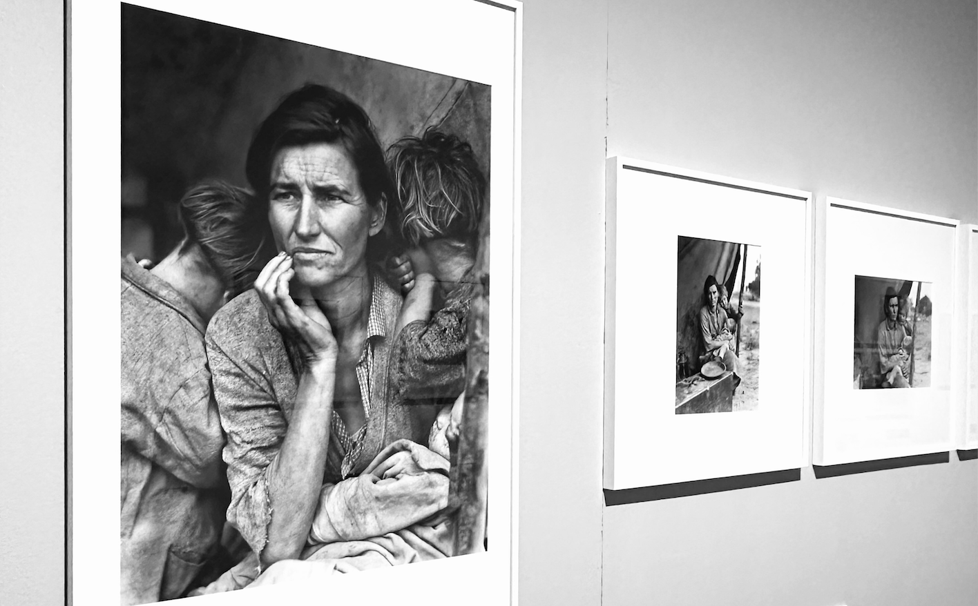 Dorothea Lange’nin 130. doğum yılı anısına düzenlenen sergi, 140 fotoğrafla sanatçının etkileyici kariyerini sunuyor. 1930’lu ve 40’lı yıllarda başlayan yolculuğunda, Lange, Wall Street’in çöküşü ve Dust Bowl gibi toplumsal travmaları belgeleyerek portre fotoğrafçılığını bırakıp belgesel fotoğrafçılığa yönelir. İkonik “Migrant Mother” bu dönemin eseridir.