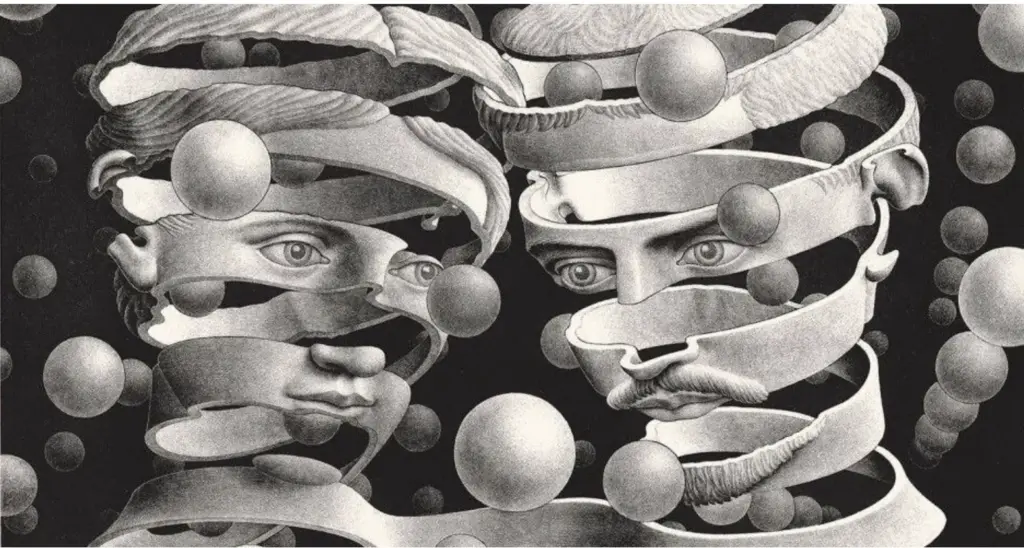 Escher’in geometrik yapılar, özyinelemeler, paradokslar ve algı üzerine sanatsal çalışmaları görsel bir yolculukla ele alınıyor.