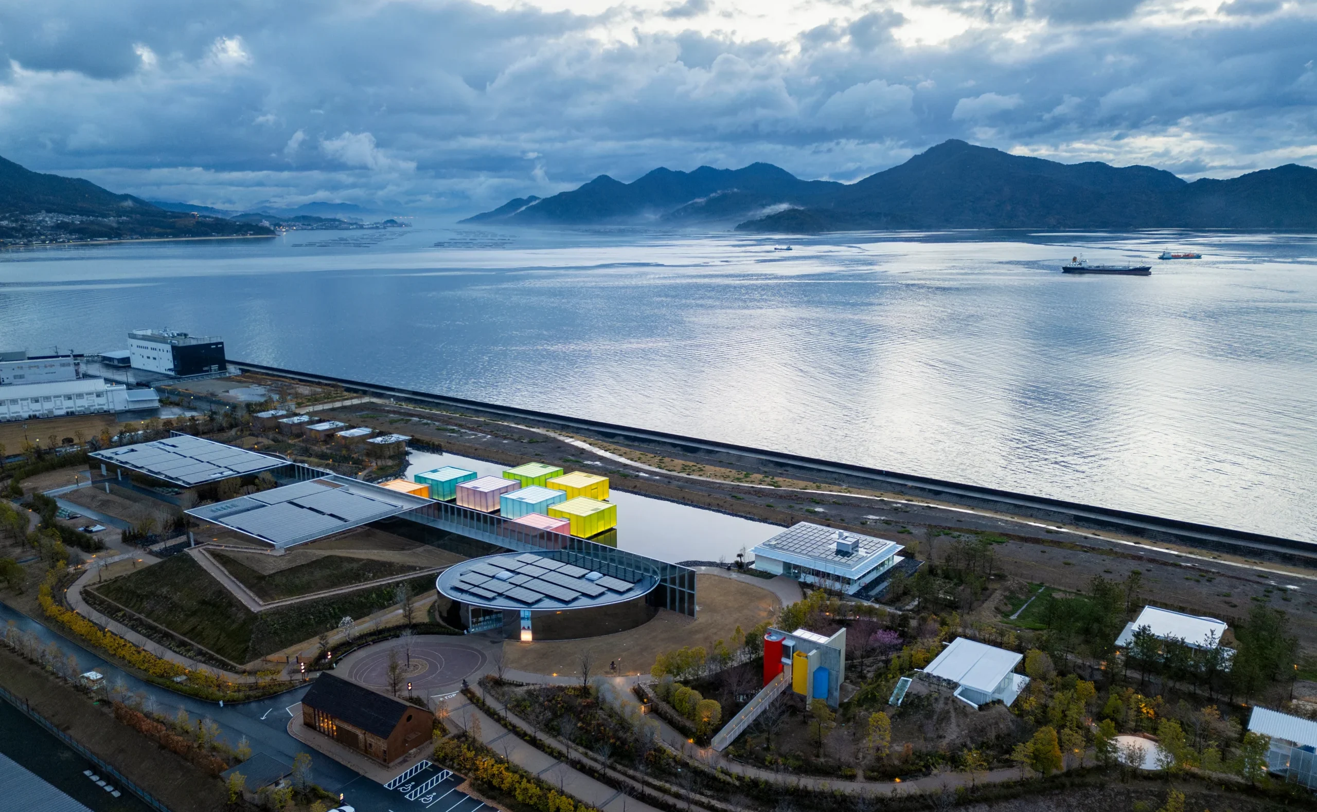 Müzenin en özgün bölümlerinden biri olan çatı terası, Seto İç Denizi’ne kesintisiz bir manzara sunarak sanat deneyimini coğrafi bağlamla buluşturuyor.