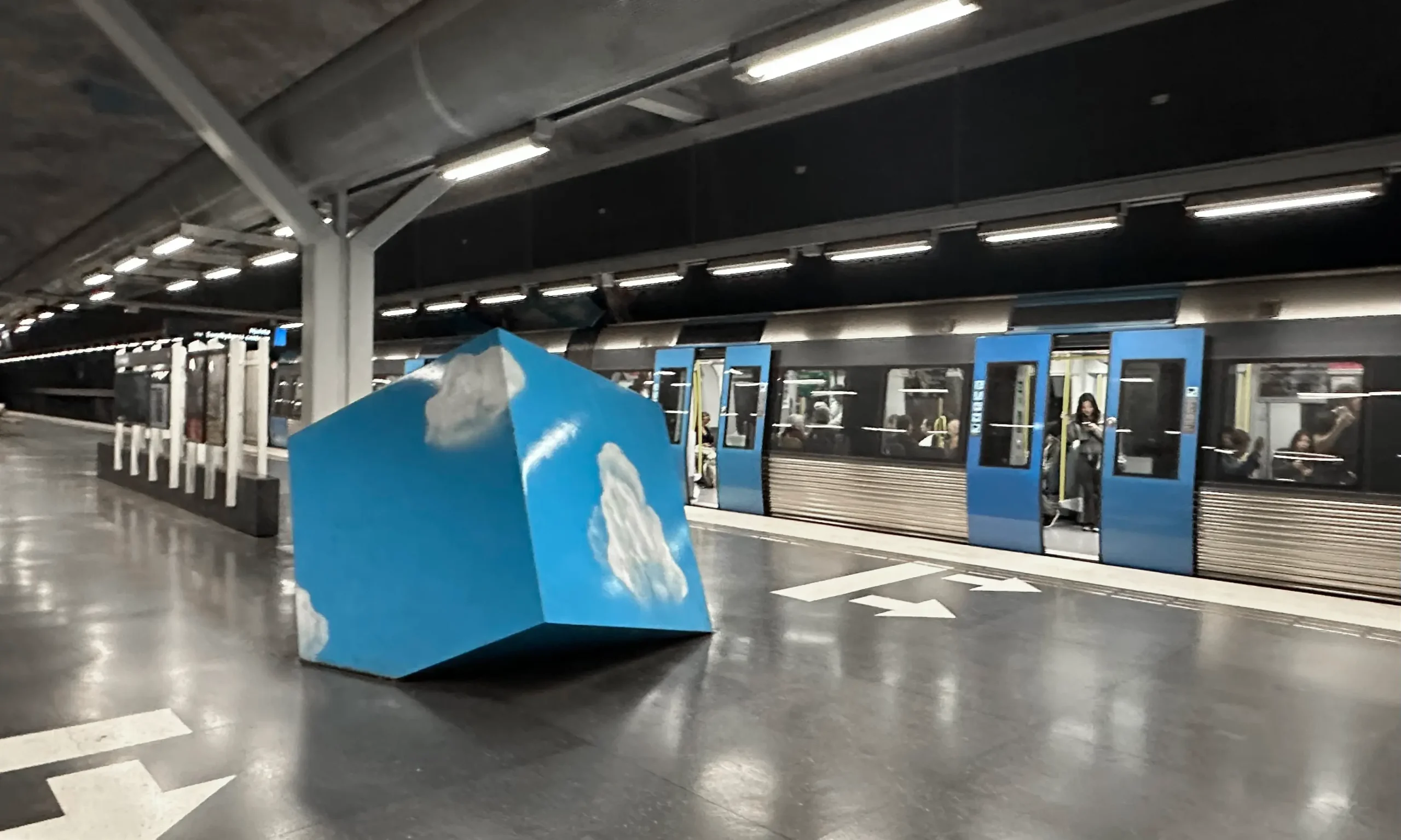 Sanatçı Per Olof Ultvedt, kinetik heykelleri ve Jean Tinguely ile Niki de Saint Phalle’le yaptığı işbirlikleriyle tanınır. Bu istasyonda ise bambaşka bir ruh hali yaratmak istemiş. Mavinin sadece estetik değil, sakinleştirici etkisi de olduğu düşünülüyor—özellikle de insanların aceleyle tren değiştirdiği bir durakta. Gerçekten de birkaç saniyeliğine nefes alıyormuşsun gibi.