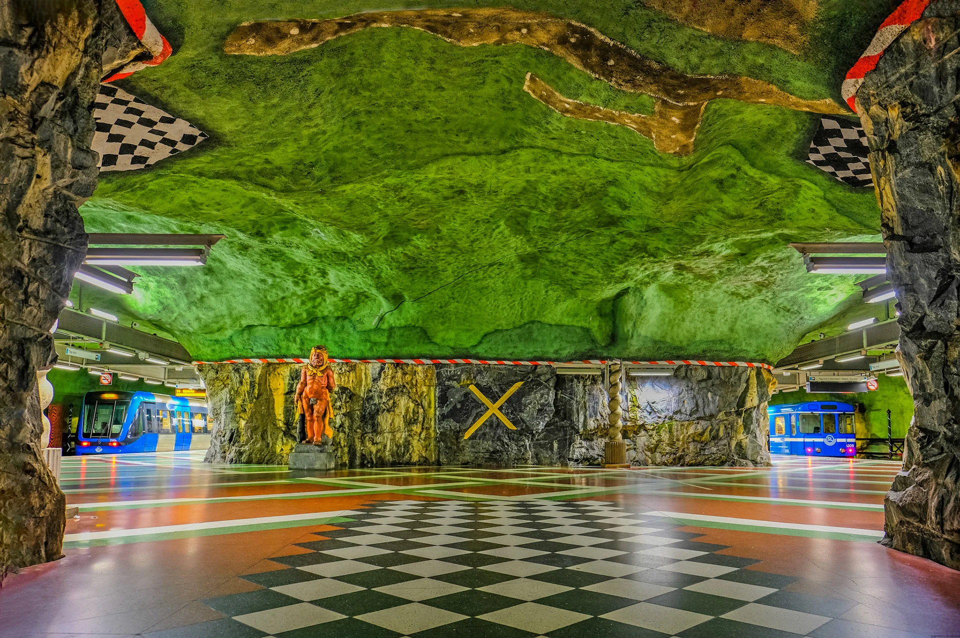 Stockholm’ün metro ağı sadece bir ulaşım aracı değil; yerin altında saklanmış, halka açık uçsuz bucaksız sergi salonları. (Üstelik şehrin değişken havasından da korunmak için ideal.) Her biri farklı bir ruh taşıyan yüz kadar istasyon var. Kimi dramatik, kimi dingin, kimi çok renkli, kimi politik. Bazıları ta metronun ana girişinde sizi karşılayıp, yürüyen merdivenlerde, geçişlerde, tüm peron boyunca devam ediyor; kimileri bunların sadece birinde ama çok çarpıcı, kimisini tren kalktıktan sonra farkediyorsunuz. Keyifli bir treasure hunt gibi.