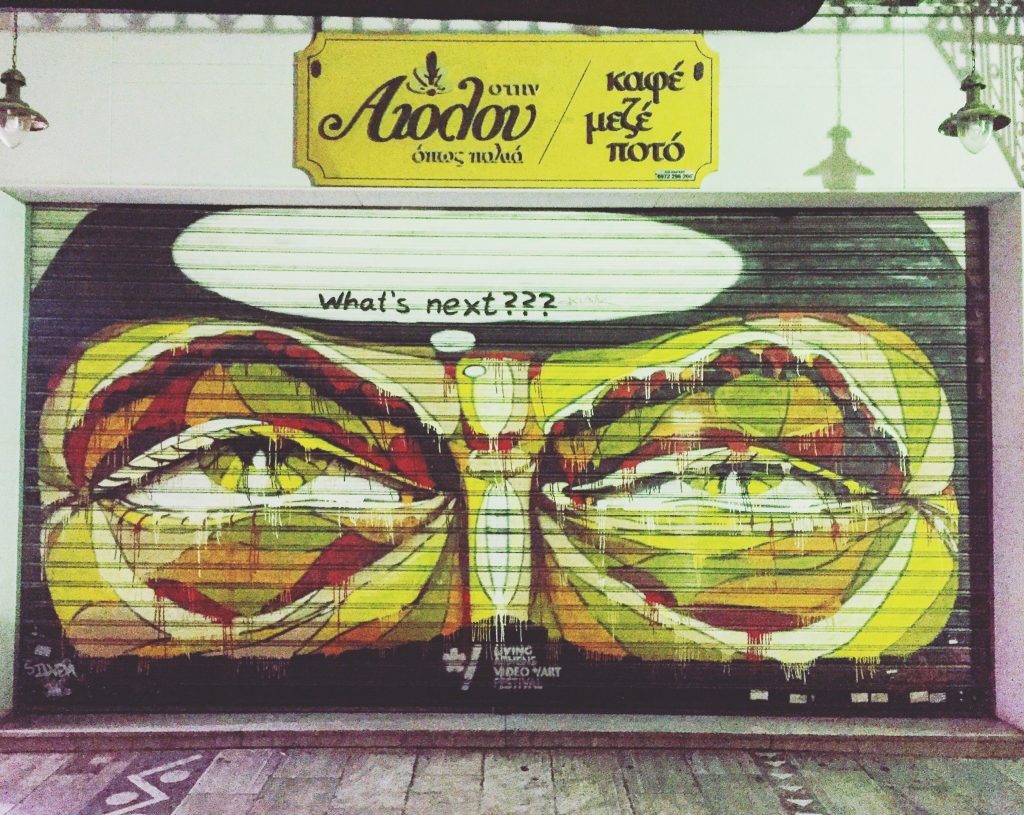 Diğer yandan, Atina’da gelişmiş bir sanat dalı varsa o da, hakkını vermek lazım ki, mutlaka sokak sanatı. Bu kadar protest bir halka da bu yakışırdı zira. Gece olup da dükkanların kepenkleri inince, o kepenklerin üzerinde şahane işler beliriyor.