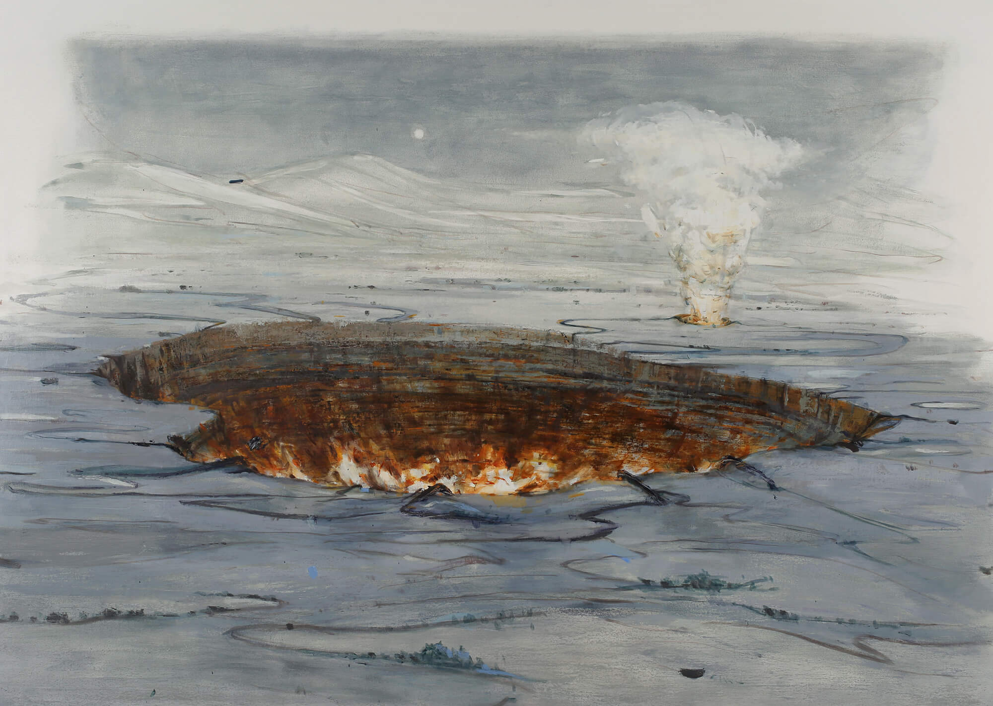 Three of my paintings are represented in the exhibition, titled as; New Moon-New World, Wounds and Gives Sign. The title of the exhibition ‘Silent and Profound’ can be associated with many of my paintings. While in the works titled Gives Sign and New Moon-New Earth have thinner, volatile and profound depth, in Wounds, the atmosphere gets heavier, and the silence is about to get deteriorated with the fire element from the vertical depth.
