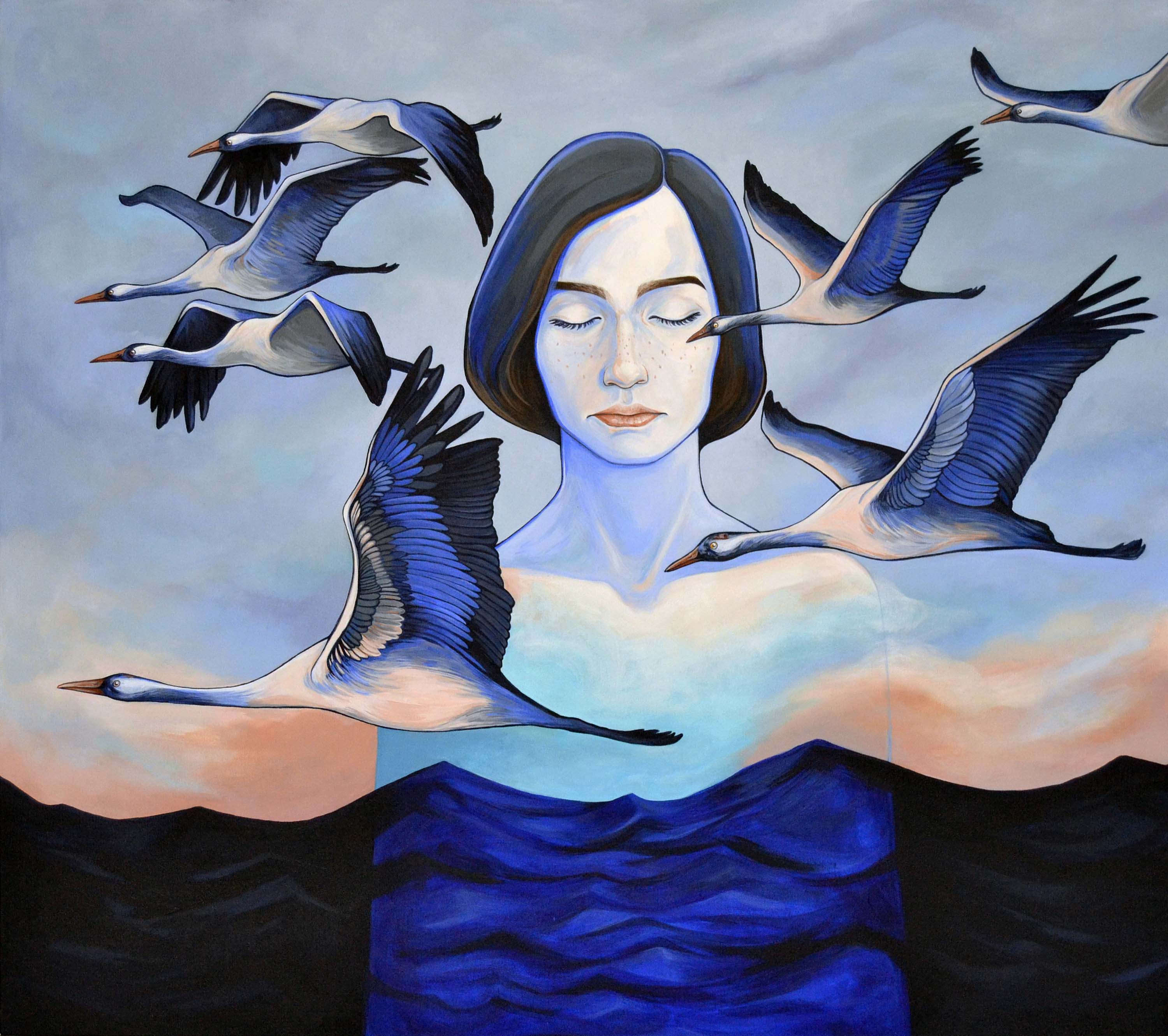 In your paintings, you deal with concepts such as distance, cycle, life-death between man and nature. Is there a reason to reflect this relationship through the image of women? As a woman artist, can we identify these images depicted as you?