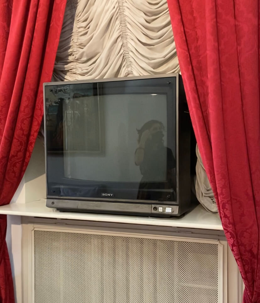 Ev-müzenin alt katındaki oturma odasındaki eşyaları ve sanat eserlerinin yanısıra eski model bir televizyon dikkati çekiyor. Sanatçı bu televizyonu, sesini açmadan sadece görsel hafızasını zenginleştirmek için izlermiş.